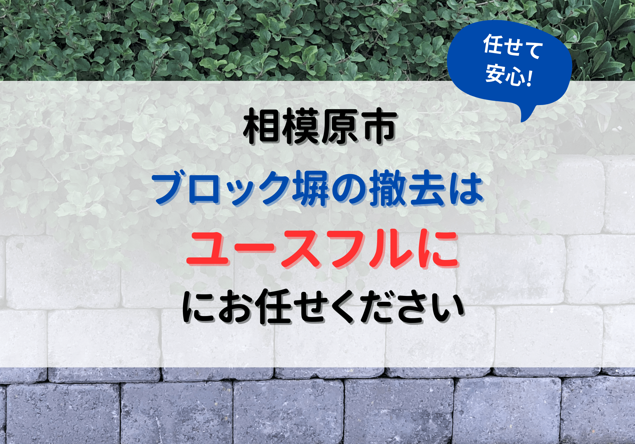 相模原市近郊でのブロック塀の撤去は便利屋「ユースフル」にお任せくださいブロック塀の撤去にお悩みの方は便利屋「ユースフル」におまかせください。ブロック塀の撤去は16,000円〜/坪で承っています。お見積もりは無料ですのでお気軽にご相談ください。ブロック塀が劣化すると、強度が弱くなり倒壊す危険性があるので早めの対処が必要です。ブロック塀の倒壊は命に関わるので安全性を担保するため、建築基準法にてブロック塀の適切な構造が定められているので従う必要があります。とくに、年数の経過したブロック塀は、現在の耐震基準を満たしておらず危険性の高いものもあるので確認することをおすすめします。耐震基準を満たしていないもしくは劣化が進んでいる場合は、可能な限り早い段階で撤去を検討しましょう。相模原市では倒壊のリスクのある危険なブロック塀の適切な撤去を目的として、危険なブロック塀の撤去や撤去後の新設を行う方向けに金銭面の補助を行う助成制度を設けています。補助申請できる人には条件があるので、利用予定の場合は確認が必要です。便利屋「ユースフル」ではブロック塀の解体や片付け、処分などを承っております。助成制度の利用も含め、ご要望や予算に合わせ最適な方法を提案いたします。ブロック塀の撤去にお困りなら、便利屋「ユースフル」にお任せください。ブロック塀の撤去は16,000円〜/坪で対応いたします。お見積り・ご相談は無料で承ります。ブロック塀の解体・撤去にかかる料金相場と目安ブロック塀の解体・撤去にかかる一般的な料金相場の目安は18,000円〜/坪ですが、便利屋「ユースフル」での料金設定は16,000円〜/坪と比較的リーズナブルになっています。ブロック塀解体に伴う注意点ブロック塀を解体する際は、スムーズに作業を完了できるよう押さえておくべき注意点があります。所有者を確認しておくブロック塀を解体する際は自身の所有物でない場合、作業開始前に所有者の確認を行いましょう。所有者が別にいる場合はあらかじめ相談が必要です。説明が難しい場合や納得してもらえない場合は、スタッフが同行して説明を行うなどの対応を行っています。相模原市のブロック塀撤去助成について相模原市では危険なブロック塀を適切に除去して住民が安心して暮らせるよう、ブロック塀撤去助成を行っています。助成対象は以下のようになっています。高さが1メートルを超えている擁壁等の上にあり、擁壁等との高さの合計が1メートルを超えているブロック塀の所有者が助成を受けられる仕組みであり、制度を利用する際は以下に連絡しましょう。電話番号:042-769-8252原則基礎まで全て撤去することが必要です。なお、助成期間は令和6年4月15日から令和6年12月27日までとなっています。令和7年2月28日までに完了届の提出が必要となっています。ブロック塀の除去が必要な場合は、早めに検討することをおすすめします。ブロック塀の解体・撤去に伴う様々なサービスを提供便利屋「ユースフル」ではブロック塀の解体・撤去に伴う様々なサービスを行っています。作業内容により料金は異なるので、あらかじめ無料でお見積もりいたします。お気軽にご相談ください。フェンスや庭木の撤去作業庭の雑草抜きなどのメンテナンス敷地内にある不要品回収・処分ブロック塀撤去後の新設関連の相談その他、ブロック塀の解体・撤去のみならず、生活での困りごとや疑問点、ご要望などございましたらお気軽にご相談ください。可能な限り臨機応変に対応いたします。ブロック塀の解体・撤去ご利用までの流れブロック塀の解体・撤去作業のサポートを検討している方は、あらかじめ流れを把握しておくのがおすすめです。お問い合わせから作業終了まで4ステップと単純なのでぜひ、確認してください。 お問い合わせブロック塀の解体・撤去を依頼する際は、まず、お問い合わせください。お電話、メール、ラインにて対応しています。電話に出られないときは、こちらの番号「090-2749-8058」で折り返しします。 無料お見積もりスタッフが現地へ出向き、お見積もりいたします。お見積もりは無料であり、お見積もり後にキャンセルして頂いてもかまいません。あらかじめ概算を把握したい場合は、ブロック塀の写真や広さなどをラインもしくはメールなどで送付していただければ対応いたします。 ブロック塀解体・撤去の作業開始打ち合わせで日程を調整し、解体・撤去作業を行います。ご希望に合わせて調整しながら作業いたします。 お支払い作業完了後、お支払いいただく流れです。なお、相模原市の助成制度を利用できるケースがあるのでその際は、条件の確認や手続きのサポートも含めて対応いたします。ブロック塀解体・撤去に関するよくある質問ブロック塀解体・撤去に関するよくある質問まとめました。気になる方は確認してください。ブロック塀が崩れかけているのですが、早急に対応してもらえますか?タイミングや予約状況