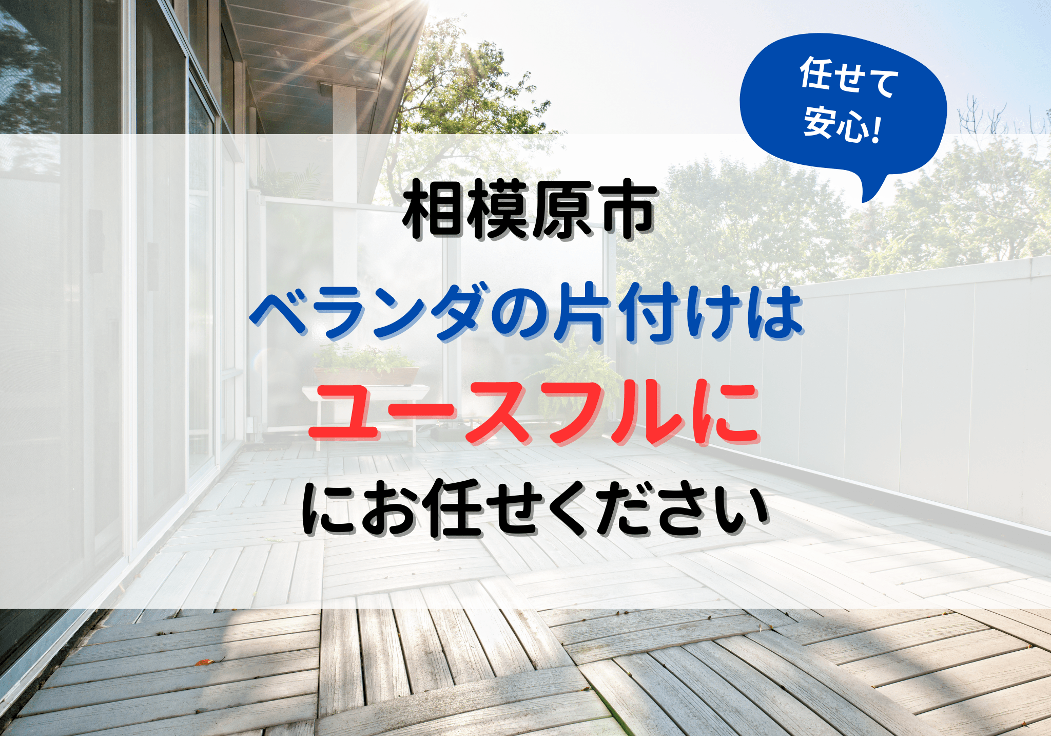 相模原市の団地・集合住宅でベランダの片付けは便利屋「ユースフル」にお任せくださいベランダの片付けにお悩みの方は便利屋「ユースフル」におまかせください。ベランダの片付けは8,800円〜/坪で承っています。お見積もりは無料ですのでお気軽にご相談ください。自宅に十分な収納スペースがなく、不用品や日常生活で使用しないものをベランダに置いておくという家庭もあります。不要なものをベランダに置いておくことで、室内を広々と使用できますが、気づいたらベランダに大量の物があふれることもあります。そのままベランダに置いた不用品を放置してしまうと、自力で片づけするのが難しいくらいベランダが荒れるケースがあります。便利屋「ユースフル」では団地や集合住宅のベランダの片付けにお困りの方のサポートをいたします。以下のように様々な状況に対応できます。ベランダに大きな物置があるので撤去してほしいプランター・植木鉢などをまとめて処分してほしいベランダを清掃してほしいベランダにあふれているものを全て処分してほしいベランダの整理整頓をサポートしてほしいその他、ベランダの片付け作業全てに対応いたします。ベランダの片付けにお困りの方は便利屋ユースフルにお任せください。8,800円〜で対応できます。環境やご依頼内容などにより料金は異なります。ご相談や現地見積もりは無料ですので、お気軽にご相談ください。団地・集合住宅でのベランダ片付けの料金相場と目安団地や集合住宅のベランダの片付けを自力でできず業者に依頼する方は多いです。ベランダの状態や不用品の数によって料金は異なりますが、一般的には約1〜2万円が相場となっています。また、時間制の場合は1時間9,000円〜に設定されているケースが多いです。便利屋「ユースフル」では環境や依頼内容などによって異なりますが、8,800円〜で対応いたします。トラックで不用品を運搬する場合、容量に余裕があれば、室内の不用品も割安で同時に回収しております。大量の不用品がある場合、お気軽にご相談ください。団地・集合住宅でベランダ片付けのサービス内容ベランダの片付け関連の主なサービス内容をご紹介いたします。ベランダの片づけの依頼を検討している方は参考にしてください。ベランダにある不用品の回収ベランダにある不用品を全て回収することが可能です。ベランダに不用品と必要なものが混在している場合、その都度お伺いしながら、不用品のみを回収いたします。ベランダに放置している植木鉢・残土などの処分ベランダに放置している不要な植木鉢や残土の処分を行っています。「植木鉢だけ処分したい」「残土のみ処分したい」などご希望に応じて対応いたします。お気軽にご相談ください。不用品回収後のベランダのクリーニング不用品をベランダに放置しているとベランダが汚れているケースが多いです。不用品回収後、汚れたベランダのクリーニングを行います。たとえば、以下のようなもののクリーニングが可能です。こびりついて取れない鳥のフンベランダで喫煙した場合に発生した汚れ放置していた不用品の劣化により生じた錆び長期間ベランダを放置していた場合、自力ではきれいにすることが難しいですが頑固な汚れにも可能な限り対応いたします。団地・集合住宅でベランダ片付けを依頼する際の流れ便利屋「ユースフル」でベランダの片づけサービスを利用する場合は、流れを把握しておくとスムーズです。あらかじめチェックしてみてください。 お問い合わせまずは、お電話かLINE、お問い合わせフォームよりお気軽にお問い合わせください。ご依頼内容やご要望、日時など打ち合わせ、相談対応いたします。 無料お見積もり依頼内容が決まった場合、スタッフ現地へ出張し無料でお見積りいたします。あらかじめ概算を把握したい方は現場の写真や広さ、ご希望などの詳細を教えていただければ対応いたします。お見積もりのみも可能ですので、お気軽にご相談ください。 作業開始打ち合わせで決まった日時に、ベランダの片付け作業を行います。作業終了後、料金をお支払いいただいて完了です。団地・集合住宅でベランダ片付けに関するよくある質問団地・集合住宅でベランダ片付けに関するよくある質問をまとめました。依頼予定の方は参考にしてください。作業をお願いするうえであらかじめやっておくべきことはありますか?必須でやっていただくことは特にございません。分別など作業しやすい状態にしていただけると、コストを抑えられます。騒音などで周辺の方に迷惑がかかることがありますか?騒音などで周辺の方に迷惑がかかることは基本的にはありません。周囲の方に配慮し、作業を行います。気になる方はあらかじめご相談いただけたれば、より気を付けて対応いたします。依頼後、キャンセルすることは可能ですか?事情がありご予約をキャンセルする場合は、前日の17時までにご連絡をお願いしております。それ以