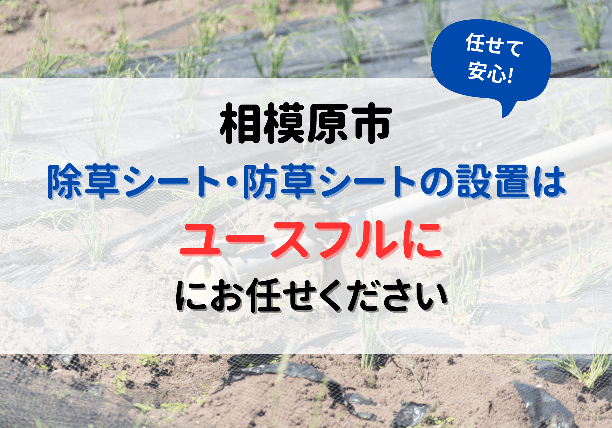 相模原市で除草シート・防草シートの設置は便利屋「ユースフル」にお任せください雑草メンテナンスが大変で除草シートや防草シートの設置を希望している方は、便利屋「ユースフル」におまかせください。各種シートの設置は1?面積あたり300円から対応いたします。お見積もりは無料ですので、お気軽にご相談ください。空き家の庭を長期間放置していたら、雑草が荒れ放題になり困る方が多いです。便利屋「ユースフル」では、雑草メンテナンスの負担軽減を目的に除草シート・防草シートの設置をしています。お困りごとのある方はご連絡ください。雑草メンテナンスが大変で除草シートや防草シートの設置を希望している方は、便利屋「ユースフル」におまかせください。各種シートの設置は1?面積あたり300円から対応いたします。除草シート・防草シートの設置にかかる料金相場除草シート・防草シートの設置にかかる料金は、作業環境や面積、作業工数により異なります。料金相場は以下の通りです。業者に依頼する場合1?あたり約300〜1,600円自力で設置する場合1?あたり約150〜800円便利屋「ユースフル」1?あたり約150〜800円除草シートや防草シートの設置を業者に依頼する際は、1?あたり300〜1,600円程度が相場です。ただし、安すぎるシートは注意が必要です。品質が弱いものが多く、頻繁に設置することになると余計に費用がかかります。一方、高価なシートは強度が高く結果的にコストを抑えられます。使用するシートの耐久性や効果などの確認も必要です。また、自分で設置できれば、料金は1?あたり150〜800円程度とお手頃価格です。ただし、手間と時間がかかる上、方法を間違えると効果不十分になります。便利屋「ユースフル」では、除草シート・防草シートの設置を1?あたり300円〜対応しています。手間は一切かからないので、お気軽にご連絡ください。除草シート・防草シートの設置サービスの利用方法シート設置の利用方法をご紹介します。お問い合わせ・ご相談対応ご依頼はお電話(042-703-6207)、ライン、メールにお問い合わせください。お問い合わせの際に、ご希望の作業内容を伝えていただけるとその後の流れがスムーズです。概算を把握したい場合は、写真などをラインやメールなどで送っていただけると対応可能です。現地調査・見積もり金額の提示シートの設置にかかる正確な費用を算出するため、スタッフが現地にて無料お見積もりいたします。お見積もり後のキャンセルにも対応していますので、困りごとのある方はお気軽にご連絡ください。作業内容の打ち合わせご契約後は作業内容を打ち合わせします。日程調整や作業内容などご希望がありましたら、臨機応変に対応いたします。シートの設置作業依頼内容と日程が決まりましたら、シートの設置作業を行います。作業終了後、その他ご要望がなければ、料金をお支払いいただいて作業完了です。自力での設置は道具の準備と費用が必要除草シート・防草シートを自力で設置する場合、道具や材料の準備が大変です。道具を持っていない場合は、一から揃える必要がありコストがかかります。道具の一例は以下の通りです。メジャー・固定用のピンシート用のテープトンカチ・スコップカッター・はさみ軍手など…また、自力でやろうとして途中で断念した場合は、道具の準備に要したお金や時間が無駄になります。始めから業者に依頼する方が安く済むケースも多いです。除草シート・防草シートの設置によくある質問除草シート・防草シートの設置でよくある質問をまとめました。雑草処理をしていないのですが、シートの設置を依頼できますか?雑草で荒れている場合は先に草抜き作業を行う必要があります。雑草の処理からシートの設置まで全て丸投げしていただけるので、手間は一切かかりません。防草シートの効果はどのくらい続きますか?効果は除草シートのタイプや質によっても様々ですが、1年から5年程度が目安です。なお、除草シートの設置により、雑草が完全に生えてこないわけではありません。除草シートを設置した後に人工芝を敷いてもらえますか?除草シートを設置後に人工芝を敷くなどご希望に合わせて対応いたします。同時の作業をご希望の場合は、日程調整も臨機応変に行います。ご要望がある方は、お気軽にご連絡ください。作業途中でも依頼できますか?作業途中であっても対応しています。自力で対処できずにお悩みの方は、お気軽にご連絡ください。除草シートは購入済みなのですが、設置のみ依頼できますか?除草シートの種類に関わらず設置可能です。ご自身で準備された場合もご相談ください。ご希望に合わせて最適なプランを提案いたします。予算があるのですがコストを抑える方法をアドバイスしてもらえますか?料金に関するご相談も承っています。予算の範囲内で作業できるよう、作業内容や商品の種類を調整いたします。予算がある方も、まずはご相談ください。土地の形が特殊なのですがシ