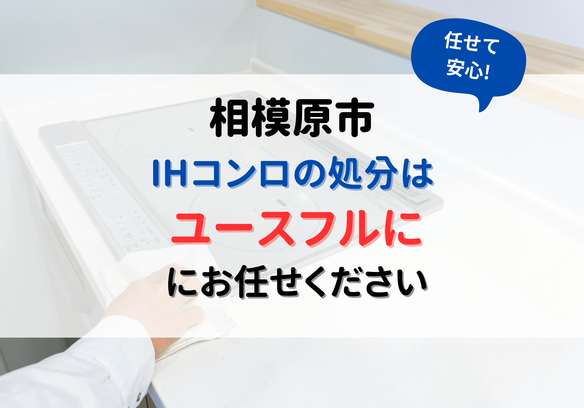相模原市でIHコンロを処分する方法と費用相模原市でIHコンロの処分にお困りの方は便利屋「ユースフル」におまかせください。IHコンロは3,300円〜処分対応しています。お見積もりは無料ですのでお気軽にご相談ください。相模原市ではIHコンロは使用済小型家電として回収ボックスにて処分できますが、回収ボックスに入らないものは大きさに関わらず粗大ごみ扱いとなります。少量であれば手軽に処分できますが、大量にある場合は運搬に手間がかかります。相模原市でIHコンロを処分する方法を以下に示しています。処分方法費用の目安手間使用済小型家電として処分する無料× 大変戸別収集を利用して粗大ごみとして処分する※粗大ごみ扱いのもの400円専用の処理施設へ持ち込み粗大ごみとして処分する※粗大ごみ扱いのもの10kgあたり240円家電量販店に下取りを依頼する0円〜(プラスになる場合あり)○ 簡単買取業者を利用する△ 手間がかかる個人売買もしくは必要な人に譲る× 大変便利屋「ユースフル」3,300円〜◎ 簡単IHコンロのサイズや搬出場所などによって料金は異なります。お困りのある方は、お気軽にご相談ください。IHコンロを処分するのが面倒で業者に丸投げしたい方は、便利屋「ユースフル」にお任せください。IHコンロの処分は3,300円〜で対応できます。お見積もりは無料ですので、お気軽にご相談ください。相模原市で自治体サービスにて処分するIHコンロは相模原市の自治体サービスにて処分でき、サイズによって処分方法が異なります。回収ボックスに入るものは使用済小型家電として処分一度投入した小型家電は取り出せないので注意が必要です。電池は抜き取って処分する必要があります。回収ボックスは、市内24カ所に設置してあり、以下のようになっています。各施設の営業時間のみ利用可能です。回収ボックス緑区緑区合同庁舎・橋本台リサイクルスクエア・北清掃工場・北部粗大ごみ受入施設・津久井クリーンセンター・城山総合事務所・津久井総合事務所・相模湖総合事務所・藤野総合事務所・ノジマNEW城山店・イオン橋本店2階中央区相模原市役所本庁舎・ノジマ相模原本店・上溝まちづくりセンター・田名まちづくりセンター南区南区合同庁舎・麻溝台リサイクルスクエア・南清掃工場・南部粗大ごみ受入施設・相模台まちづくりセンター・相武台まちづくりセンター・東林まちづくりセンター・麻溝まちづくりセンター・イオン相模原店3階多量の小型家電を排出する場合麻溝台リサイクルスクエア橋本台リサイクルスクエア津久井クリーンセンター大量の小型家電を処分する場合は、別途施設が定められています。30センチメートル×15センチメートルの投入口に入るもののみ利用できます。粗大ごみとして処分するサイズの大きいIHコンロは粗大ごみ扱いとなっています。処分料金は、戸別収集を依頼する場合と持ち込み処分をする場合とで異なります。粗大ごみは電話、インターネット、はがきにより事前に申し込む必要があります。粗大ごみ収集シールをお申し込み後に購入します。粗大ごみは収集日当日の午前8時30分までに、指定場所にだすこととなっています。混雑時期には収集日が1カ月以上先になる場合があるので、早めに申し込むことをおすすめします。粗大ごみの戸別収集を利用する戸別収集を利用して粗大ごみとして処分する場合、処分費用は申し込み時に確認が必要です。戸別収集であれば持ち込む手間がかかりません。以下が申し込み先になります。戸別収集の申込先電話での申し込み電話番号:042-774-9933受付時間:月曜日〜金曜日(祝日、12月29日〜1月3日は休業) 午前8時〜午後6時インターネットでの申し込み24時間受付相模原市粗大ごみ受付事務所 インターネット受付はがきでの申し込み相模原市緑区下九沢2074-2 北清掃工場内 粗大ごみ受付事務所申し込み時の確認事項・収集日・受付番号・品目・個数・必要な収集シール枚数・持ち出し場所・手数料シールへの記入・氏名・受付番号・収集月日粗大ごみ収集シールは400円の1種類のみなので、手数料分の枚数のシールを購入する必要があります。収集シールの払い戻し、再発行はできないので申し込み時に確認して購入しましょう。粗大ごみ収集シールは、コンビニエンスストアなどの「粗大ごみ収集シール取扱店」の表示のある店舗にて購入します。粗大ごみ収集シールに必要事項を記入したら、見やすい場所に貼り付けます。収集日の朝8時30分までに持ち出し場所へ出せば立ち会いは不要です。指定場所まで搬出する必要があるので、量が多い場合は手間がかかります。状況に合わせて処分方法を検討しましょう。粗大ごみ処理施設に持ち込み処分する粗大ごみ処理施設に持ち込み処分する場合、料金は10kgあたり240円です。あらかじめ重さを確認しておくと、おおよその費用を把握できます。相模原市の対象の処理施設は以下の通りです。 相模原市南部粗大ごみ受入施設住所:相模原市南区麻溝台1524-1電話番号:042-767-530